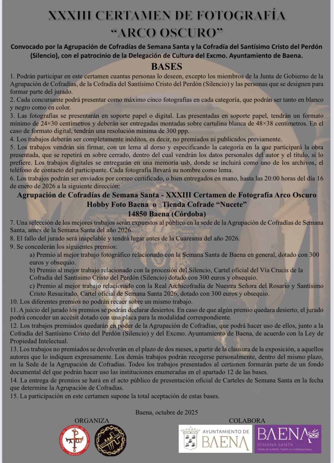 XXXIII Certamen de Fotografía " Arco Oscuro"